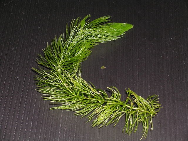 Soft and bushy, like we think of raccoon tails. Fully submerged, free-floating, aquatic plant that creates habitat and hiding places underwater as well as blocking the sun from creating algae blooms (you do want some algae to grow though, if you are trying to help out native frogs).